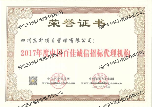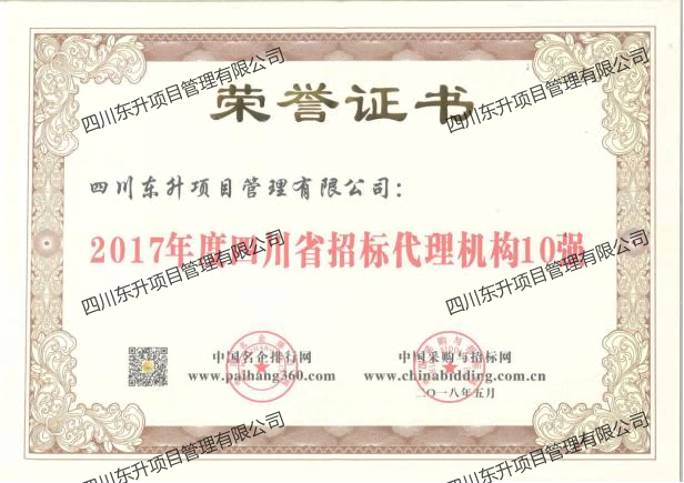 2017年度中國百佳誠信招標(biāo)代理機(jī)構(gòu) 2017年度四川省招標(biāo)代理機(jī)構(gòu)10強(qiáng)